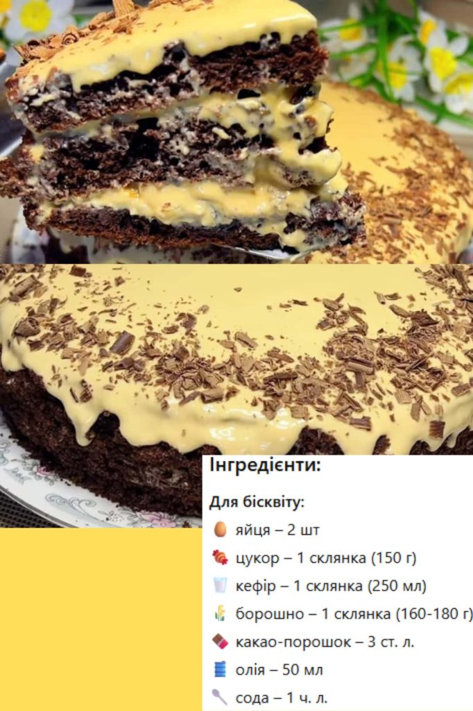 Цей торт дуже смачний, простий у приготуванні, з доступних продуктів, які завжди знайдуться вдома.