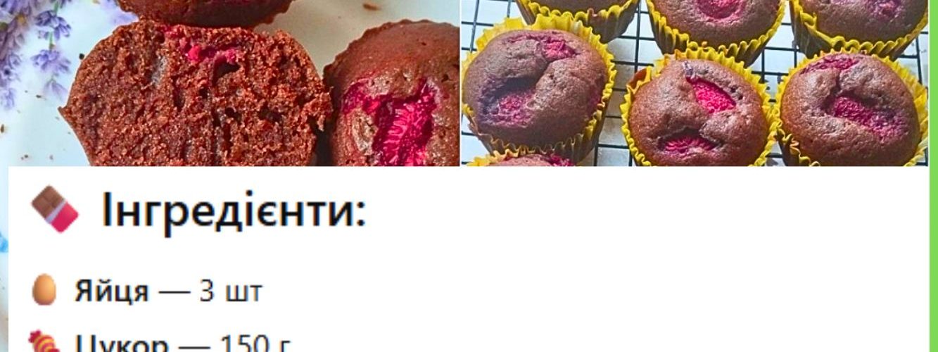 Ароматні, м’які й шоколадні кекси з додаванням свіжих чи заморожених ягід — це один із найпростіших десертів, які підходять до чаю, кави або як перекус для дітей. Вам не потрібно нічого особливого: мінімум інгредієнтів, одна миска та 30 хвилин часу — і домашня випічка вже на столі!