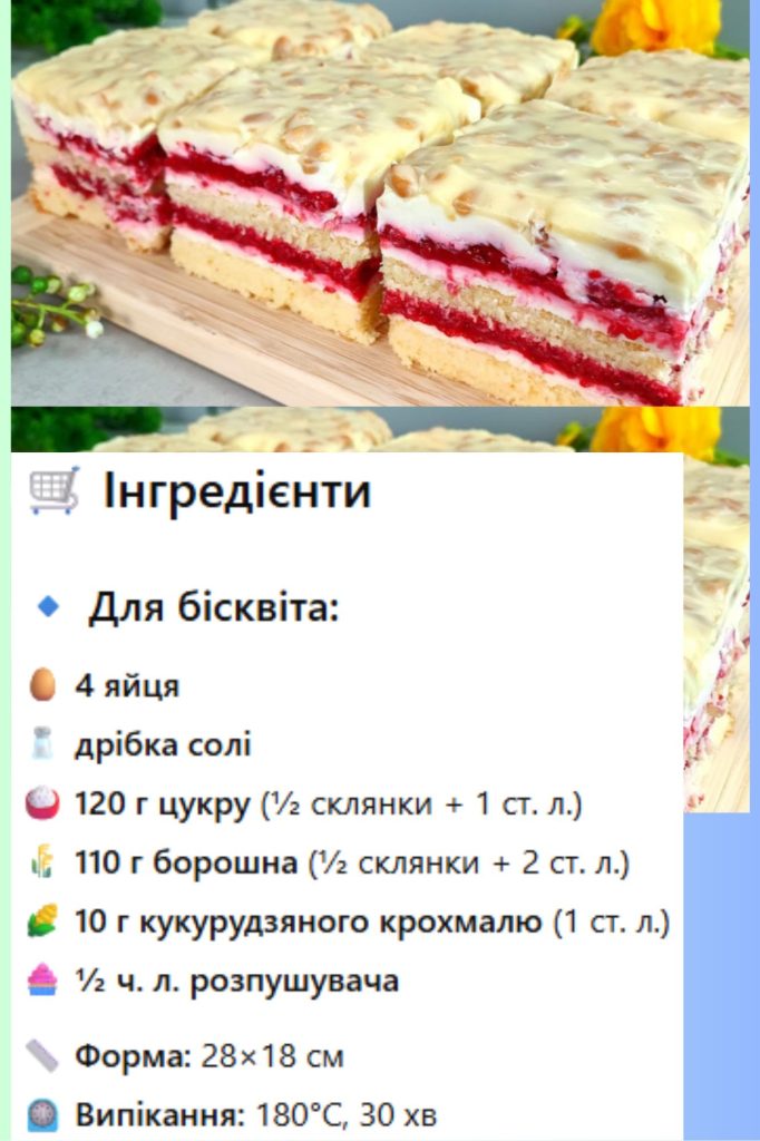 Цей вершково-малиновий торт — неймовірна смакота! Готується швидко, виглядає святково, а смакує ще краще. Обов’язково спробуйте цей рецепт на вихідні або для гостей.