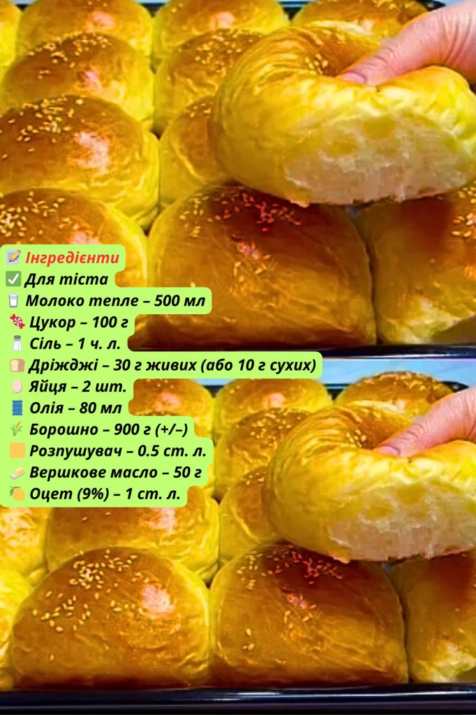 Булочки за цим рецептом завжди виходять неймовірно ніжні, пухкі та ароматні. Секрет простий: у тісто додається зовсім трішки оцту, і саме він робить випічку легкою, ніби хмаринка.