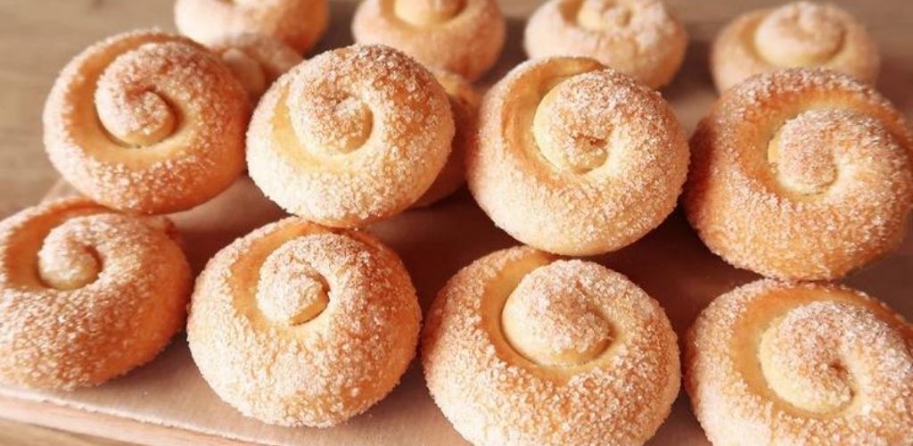 Готові спіральки вмочую в цукор.